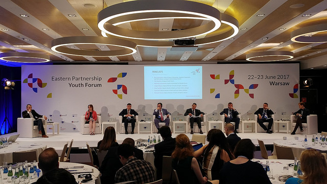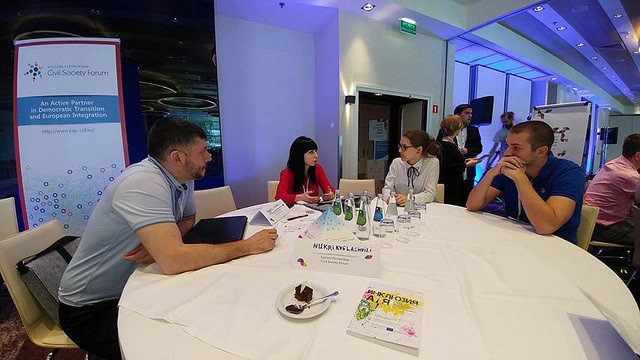 After the WG4 Meeting ten members of the Working Group took part in the 3rd EaP Youth Forum 2017. The WG4 Coordinator and EaP CSF Steering Committee Member Alexandra Kalatozishvili shared her views during the opening panel session on how to enable young people to engage in a diverse, connected and inclusive Europe with Deputy Ministers of Youth and Sport from Azerbaijan, Georgia, Moldova and Ukraine. She highlighted the challenges the youth in the EaP region face, and civil society contribution to the inclusion of young people. WG4 members presented the EaP CSF work during the “big fish” networking meetings and discussed youth rights, higher education and civil society empowerment with the young people from the EaP and EU countries.
